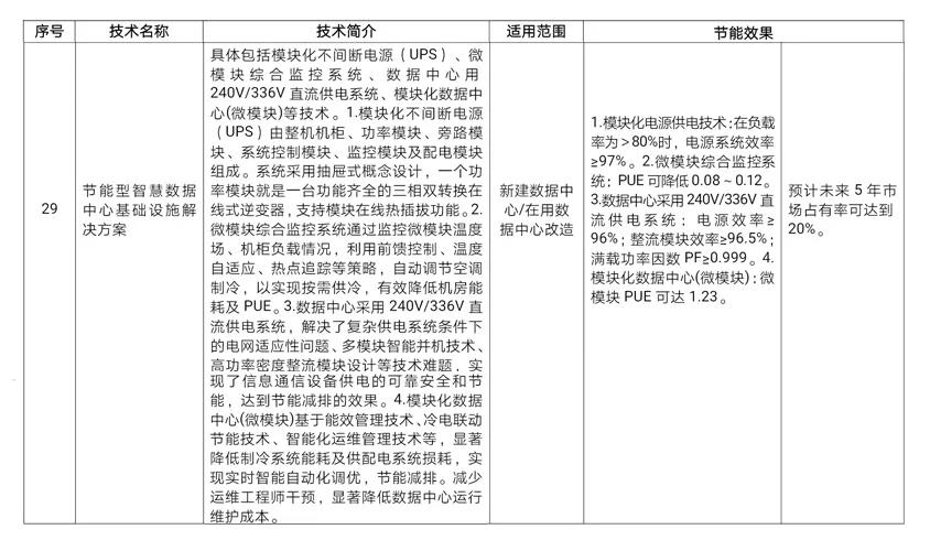 本次入选的产品“节能型智慧数据中心基础设施解决方案”,适用于新建数据中心及在用数据中心改造,具体包括:模块化不间断电源(UPS)、微模块综合监控系统、数据中心用240V/336V直流供电系统、模块化数据中心(微模块)。